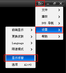 在快播播放器的右上角有个“主菜单”按钮,点击该快播主菜单,选择“设置”再选择“显示悬浮窗”,就可以打开快播悬浮窗口了,如下图。