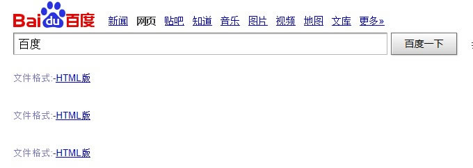 今日下午15:00左右,陆续有网友在微博上称百度搜索疑似出现大面积故障,输入任何关键词,搜索结果页面均重复显示“文件格式-HTML版”,点击则无法打开页面。另外,除了百度自有的新闻产品,其它第三方结果均为空白,网页则因故障出现大面积留白。