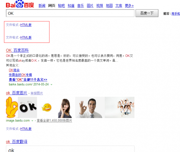 打开百度随意搜索一个词“百家乐”百度搜索结果如下