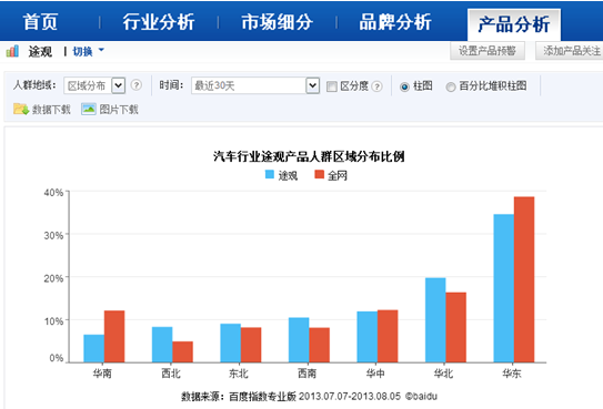 百度指数专业版充分整合百度数据优势,利用切词、聚类和交叉分析等数据挖掘技术,将搜索关键词逐层进行细分聚类,挖掘出行业、细分市场、品牌和产品这四大类的搜索数据,以准确、系统、客观地反映它们的发展动态及趋势。